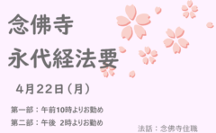 3月念佛寺Youtubeの更新です 念佛寺ブログ 2024.03.04 『松並松五郎念仏語録44』をアップロードしました もう少し早くアップロードを2月中に行いたかったのですが、住職と副住職の都合がどうしても合わず、動画撮影が延期の繰り返しをなり3月になってしまいました。内容はご覧になっていただく中で味わっていただければよいので申し上げませんが、普段の生活が仏法になっている松並師の生き方には驚かされることばかりです。どうぞご覧になってください 念佛寺
